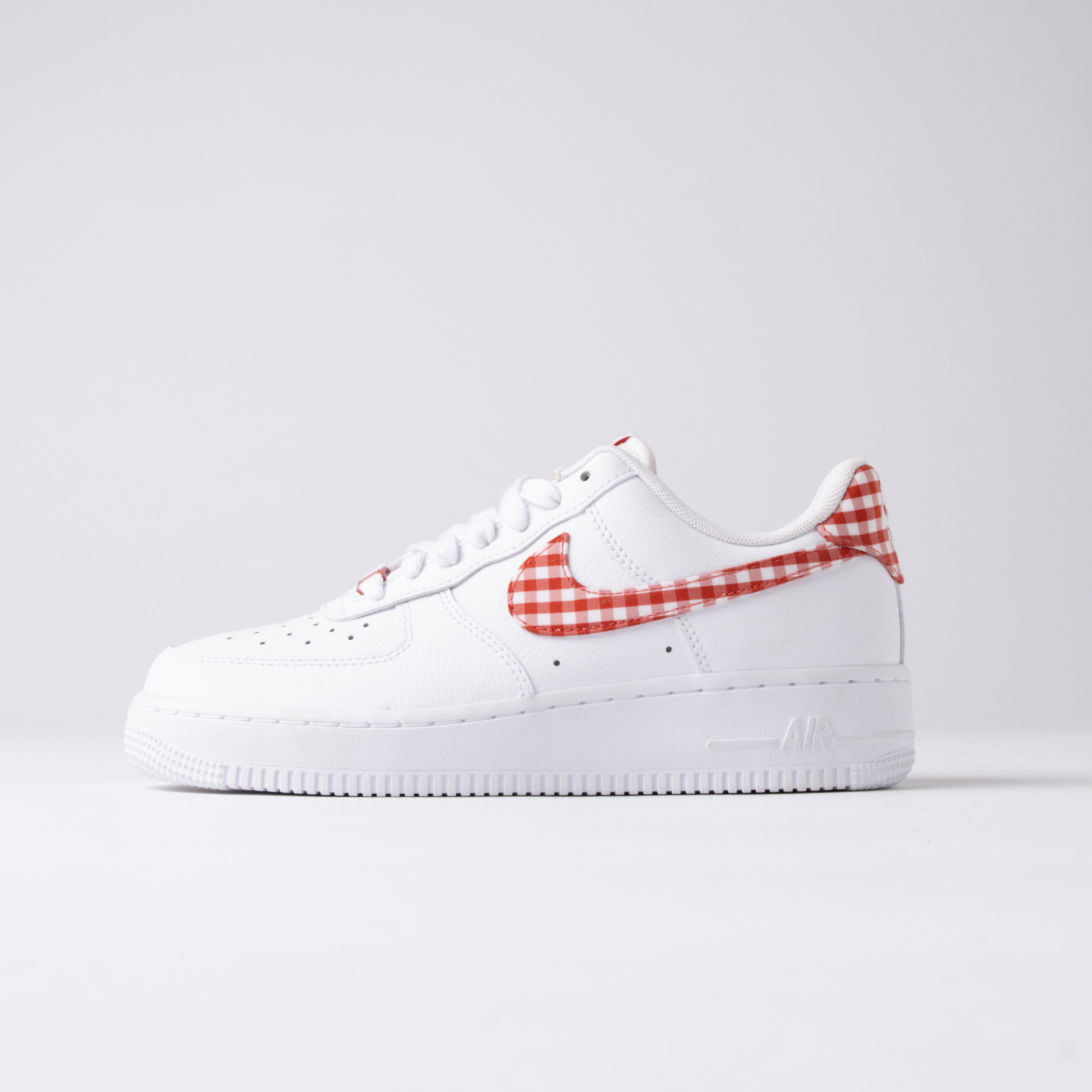 Los Nike Air Force 1 Low ’07 Essential Mystic Red Gingham reinterpretan el clásico AF1 con un toque fresco, femenino y versátil. Este par combina la atemporalidad del blanco con detalles en rojo gingham (estampado tipo mantel de picnic) que lo hacen único, divertido y perfecto para destacar en cualquier ocasión.