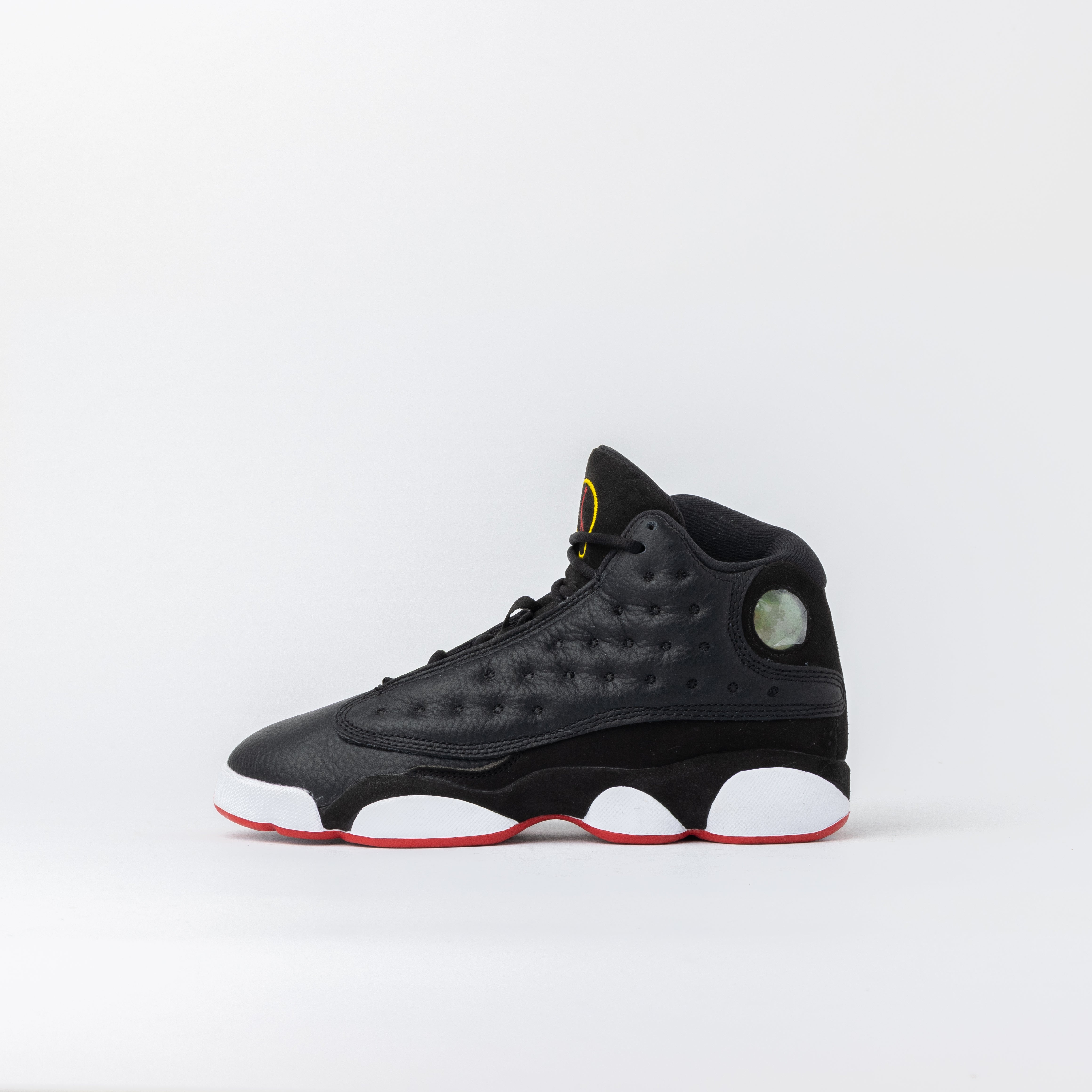 El AJ13 fue diseñado por Tinker Hatfield con inspiración en una pantera negra —por la forma de la suela y el famoso holograma lateral—, reflejando la ferocidad y agilidad de MJ en la cancha. El colorway Playoffs fue estrenado durante el All-Star Game de 1998 y lo acompañó en sus últimos Playoffs con los Bulls, cuando conquistó su sexto campeonato. El regreso de 2023 mantiene la esencia OG, ahora en versión para jóvenes.