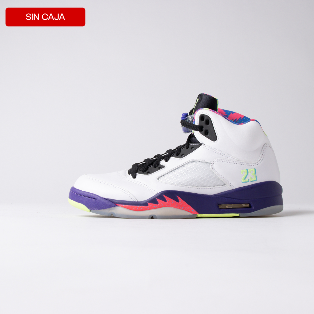 Detalles: bordado “23” en colores neón, lengüetas reflectantes con Jumpman bordado en rosa (izquierdo) y verde (derecho), forro interior con estampado multicolor