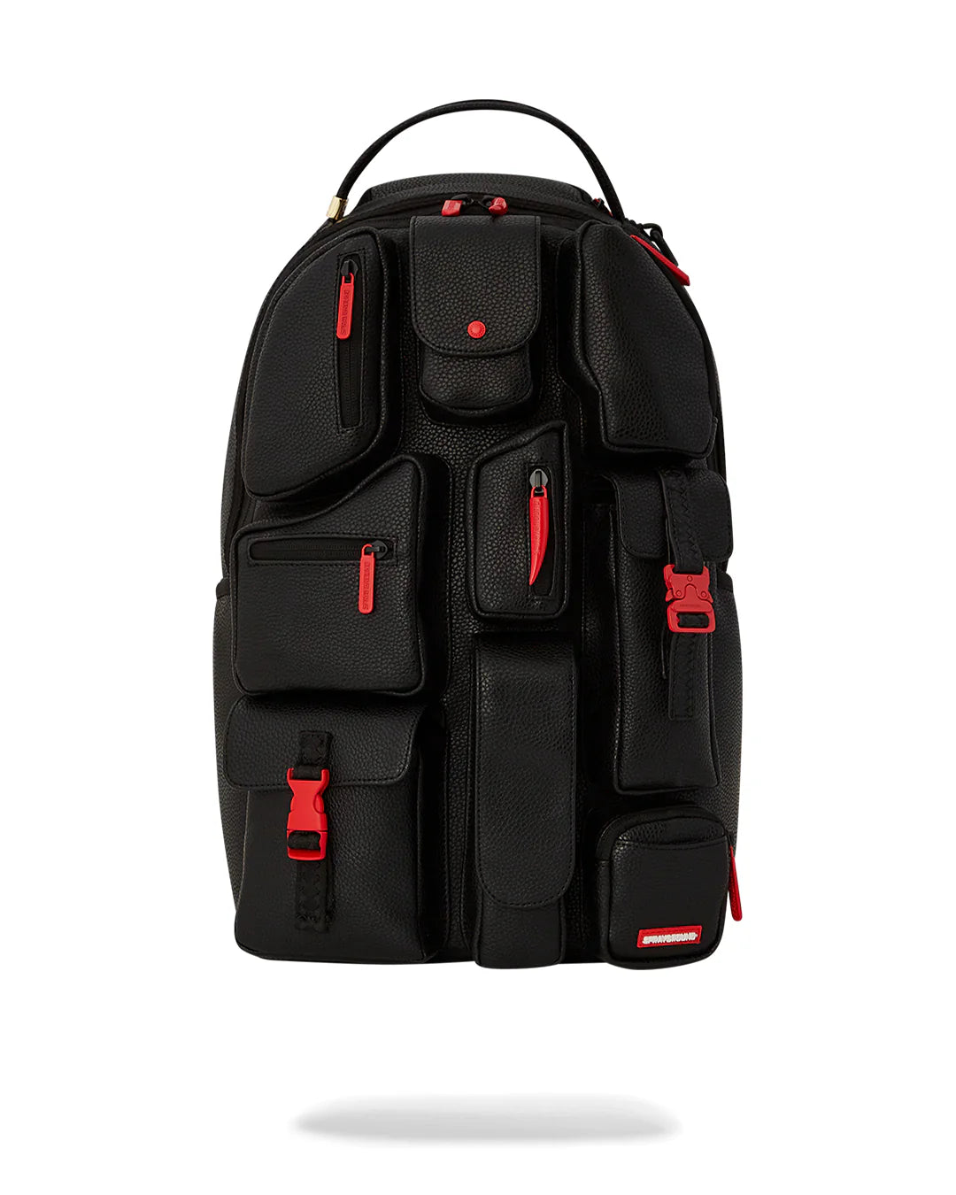 Exterior: Dimensiones: 46 cm x 15 cm x 29 cm - Bolsillo frontal con cremallera - Bolsillos laterales - Bolsillo oculto con cremallera - Acolchado ergonómico de malla en la espalda - Correas ajustables para tamaños personalizados - Cremalleras de nailon con herrajes metálicos - Bolsa metálica "Sprayground Authentic" - Funda trasera deslizante que se fija al equipaje de mano para liberar las manos