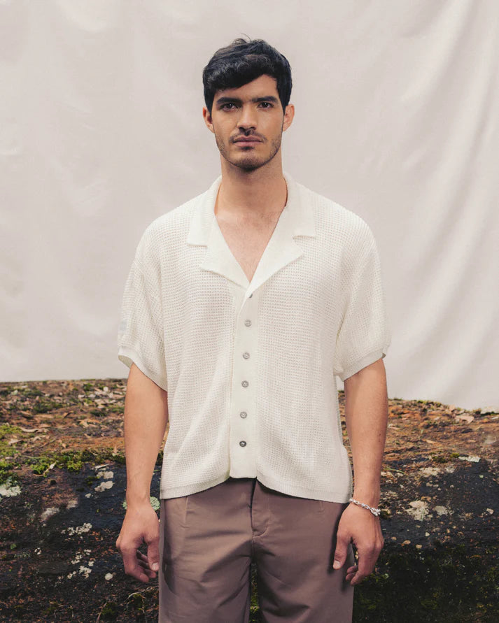 Camisa unisex de silueta semi oversized, tejida a mano en una mezcla de 50% acrílico y 50% modal, que ofrece una textura suave, ligera y de excelente caída. El tono crema aporta calidez visual y un acabado artesanal que resalta por su autenticidad y detalle.