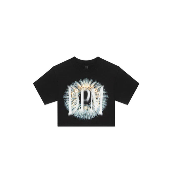 Crop Top color negro. Tela: 100% algodón. Alto gramaje (200 gr). Estampado en el frente y en espalda en alta densidad con marquilla tejida.