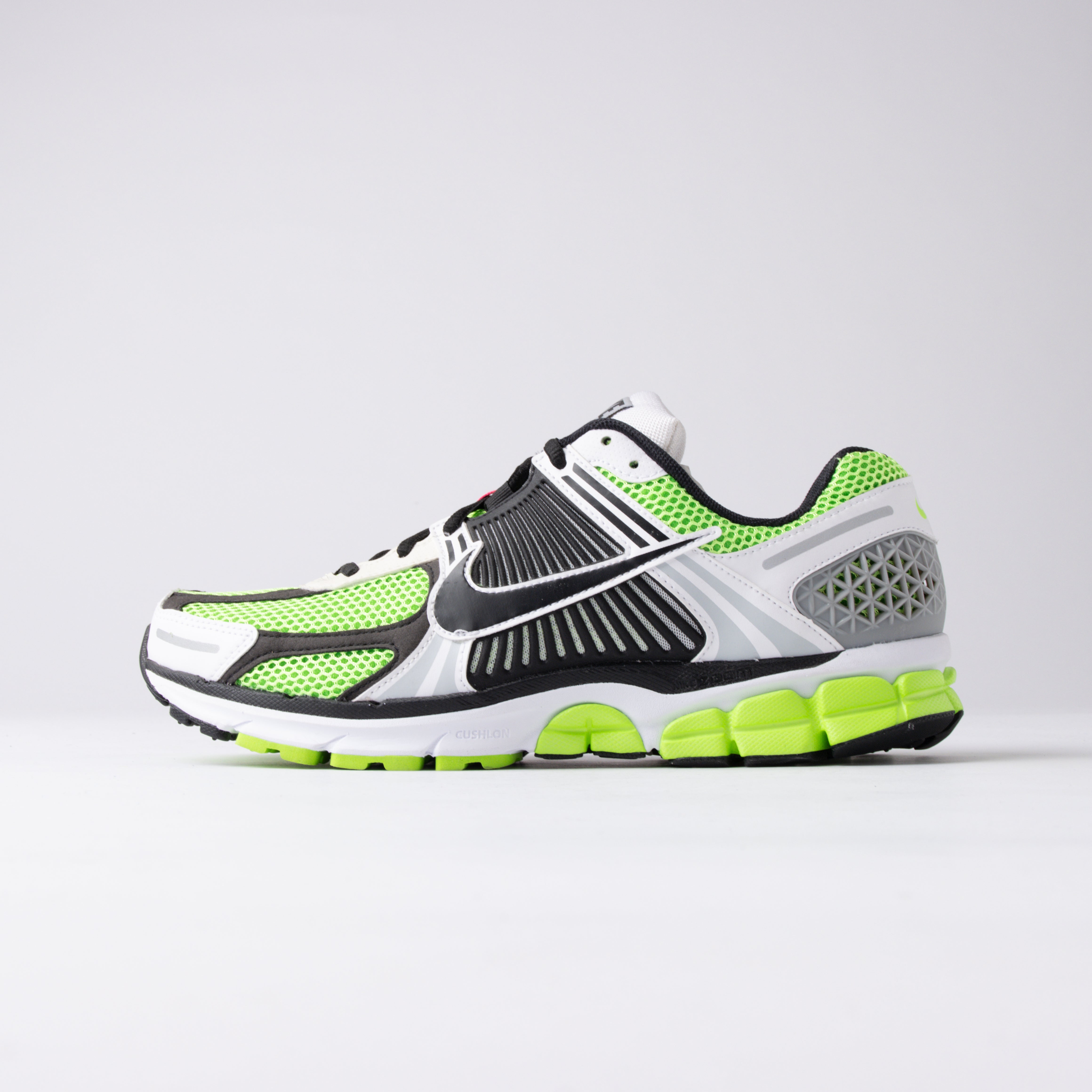 El Vomero 5 debutó en 2010 como un modelo de alto rendimiento para corredores, reconocido por su tecnología de amortiguación y su diseño cargado de detalles. En su regreso, Nike lo convirtió en un sneaker lifestyle, conservando su herencia de performance. La versión Black Electric Green mezcla sobriedad y energía: base negra contrastada con toques de verde eléctrico que resaltan su construcción técnica.