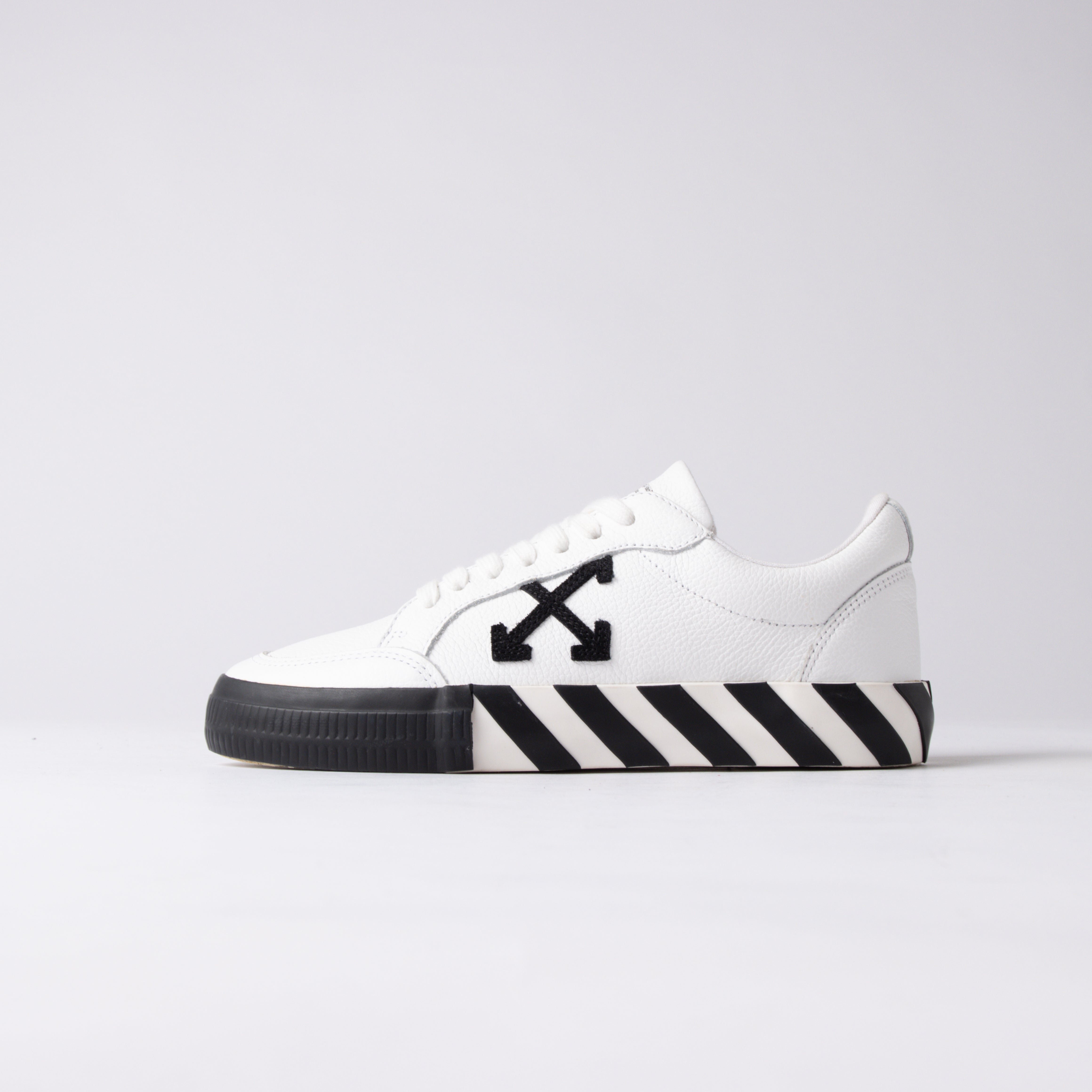 Los Off-White Vulcanized Low Leather – White/Black/Orange son la máxima expresión del streetwear de lujo creado por Virgil Abloh. Lanzados dentro de la línea Vulcanized, reinterpretan el sneaker clásico con detalles industriales y narrativos que convirtieron a Off-White en un fenómeno cultural.
