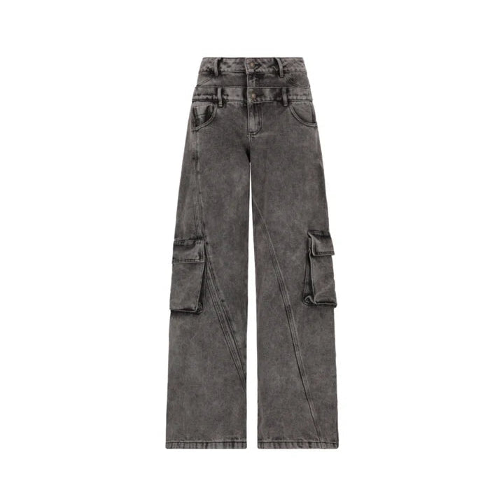 Jean de mujer con doble pretina, una pieza que redefine la silueta clásica con un diseño arquitectónico y contemporáneo. La doble pretina aporta un efecto visual envolvente que enmarca la cintura y realza la estructura del torso con elegancia y firmeza.